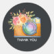 Sticker Rond Boho Orange Caméra & Fleurs Merci d'aquarelle