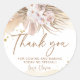 Boho Pampas Grass Merci Autocollant Rond Classique. Peut être utilisé pour n'importe quelle occasion comme les anniversaires, les baby showers, les enterrements de vie de jeune fille, les mariages, et plus encore.
