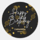 Sticker Rond Bokeh or moderne Gradient Noir Joyeux Anniversaire