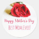 Un autocollant qui dit Bonne Fête des Mères avec une seule rose rouge. Classique et élégant. Texte personnalisable dit : Meilleure Maman toujours!