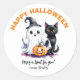 Sticker Rond Boo ! Happy Halloween convivial fantôme & chat