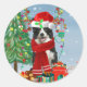 Sticker Rond Bordure Collie chien dans Neige avec cadeaux de No