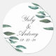 Thème Arrière - plan de verdure minimaliste Botanique Moderne Mariage Classic Sticker rond Personnalisez les étiquettes avec vos noms et la date. Cet ensemble de Stickers Rond Ensemble de feuilles verts, pour un mariage élégant. Voir mon magasin pour plus de produits de cette collection.