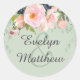 Sticker Rond Bouquet rose pâle sur Mariage vert Sage