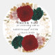 Cet élégant autocollant rond présente une belle décoration florale aux couleurs d'automne or, bordeaux et vert émeraude. La conception comprend une couronne de rose, de feuille et de baies, avec les mots "Merci", imprimés dans une police de caractères stylisée. Cet autocollant est parfait pour ajouter une touche d'élégance automnale à vos cadeaux, invitations ou autres projets.