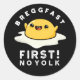 Sticker Rond Breggfast First No Yolk Funny Egg Pun Dark BG