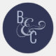 Sticker Rond Brides Chambres Monogramme Marine Bleu Mariage mod