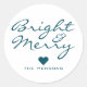 Sticker Rond Bright and Joyeux Script Bleu Nom vert Noël