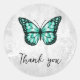 Sticker Rond Brillant Merci papillon Turquoise