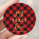 Buffalo Plaid Joy Peace Love Monogramme Classic Round Sticker