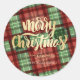 Sticker Rond Buffle rouge vert Plaid Joyeux Noël