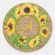 Sticker Rond Burlap Monogramme Rustique Des Tournesols