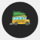 Sticker Rond Bus scolaire jaune Noël Light Tree Driver Paja