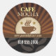 Le café est le nom du jeu sur cet autocollant qui utilise les couleurs et les images des cafés. Un insigne représentant une tasse de café à la vapeur se distingue par un cercle beige ponctué d'étoiles. Des poutres Brown éclatent derrière le badge et vos principales informations commerciales s'impriment en dessous dans un panneau noir avec des images de grains de café. Disponible avec des produits correspondants.
