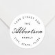Étiquettes d'adresses de retour circulaires personnalisées avec nom de famille personnalisé en script classique. Parfait pour la décoration des enveloppes, des emballages cadeaux/cadeaux, et plus encore!