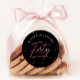 Calligraphie rose-noir moderne Sticker rond classique 40e Anniversaire présente un éclat amusant de confettis de faux feuil rose et de calligraphie moderne.