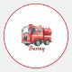 Sticker Rond Camion rouge pompier upsherin fête d'anniversaire