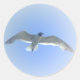 Une mouette glisse à travers un ciel d'été bleu clair.