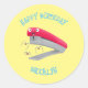 Sticker Rond Caricature en agrafeuse rouge pâle