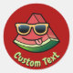 Caricature mignonne. Trancher de pastèque avec lunettes de soleil. Couleur arrière - plan personnalisée. Texte personnalisé.