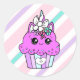 Sticker Rond Carton mignon Whimsical violet Unicorn Cupcake