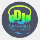 Sticker Rond Casques DJ vert bleu ajouter votre nom