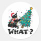 Sticker Rond Ce drôle Chat Noir Père Noël Poussant Arbre de Noë