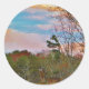 Sticker Rond Cerf avec ciel bleu rose