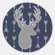 Cerf gris rustique moderne et flèches blanches sur autocollants bleu marine.