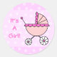 Sticker Rond C'est une fille ! Transport de bébé rose