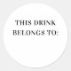Sticker simple en noir et blanc "Cette boisson appartient à..." pour mariage, douche nuptiale, fête d'anniversaire adulte.