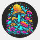 Sticker Rond Champignons et fleurs rétro Neon