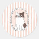 Des rayures orange douces et atténuées créent un fond chaud et cosy pour cet adorable autocollant de chat mettant en vedette un mignon petit chat assis au centre. La palette de couleurs douces donne au design une sensation calme et esthétique tout en mettant en valeur l'illustration ludique du félin. Parfait pour décorer les ordinateurs portables, les bouteilles d'eau, les cahiers, les agendas, les étuis de téléphone et les journaux, cet autocollant ajoute une touche subtile de personnalité sans être trop brillant.