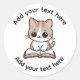 Autocollant adorable d'un chat calicot de dessin animé mignon assis sur un livre ouvert. Il y a un modèle placé au-dessus et en dessous de l'image afin que vous puissiez ajouter le texte que vous souhaitez pour personnaliser ces autocollants uniques pour vous. Idéal pour les amateurs de livres et les amateurs de chats.