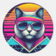Sticker Rond Chat Cool rétro