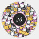Sticker Rond Chat face doodé félin motif animaux monogramme amu