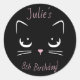 Sticker Rond Chat noir et rose Kitty Visage Anniversaire