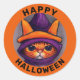 Sticker Rond Chat orange avec sorcière violette Casquette Bonne