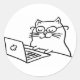 Chat mignon portant des lunettes travaillant sur ordinateur portable