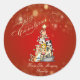 Sticker Rond Chats mignons Pine Tree Noël rouge
