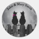 paire de chats noirs sur une clôture en bois avec queues reliées comme un coeur au clair de lune