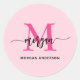 Sticker Rond Chaud rose moderne Script Girl Monogramme Nom
