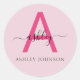 Sticker Rond Chaud rose moderne Script Girl Monogramme Nom