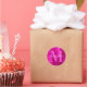 Créez votre propre nom personnalisé et des autocollants monogrammés d'enveloppe pour son événement spécial. Graphique en fausse feuille d'art numérique couleur dégradé Fuchsia. Monogramme contemporain rose et blanc clair avec élégante conception de calligraphie de style signature sur un autocollant rond classique.