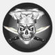 Vous êtes fière de vos talents culinaires ! Montrez-le avec cet autocollant de chef crânien avec un chef crânien malade portant son casquette, devant deux couteaux de chef pointus et un arrière - plan noir pointu. Le dos peut être changé à votre couleur de choix. La personnalisation vous permet de redimensionner les images pour qu'elles correspondent à votre nom pour une touche personnalisée !