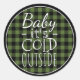 Belle, unique, classique, tendance, jolie et décorative forêt vert et noir bûcheron écossais design motif avec une bordure rouge et blanche brillante. Et amusant "Baby His Cold Outside" cite le texte écrit en typographie.