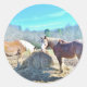 Sticker Rond Chevaux de trait secourus mangeant le foin