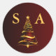 Sticker Rond Chic élégant or Noël Arbre Monogramme Mariage