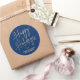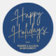 Sticker Rond Chic Gold Script Happy Holidays Blue