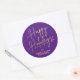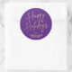 Sticker Rond Chic Gold Script Happy Holidays Purple